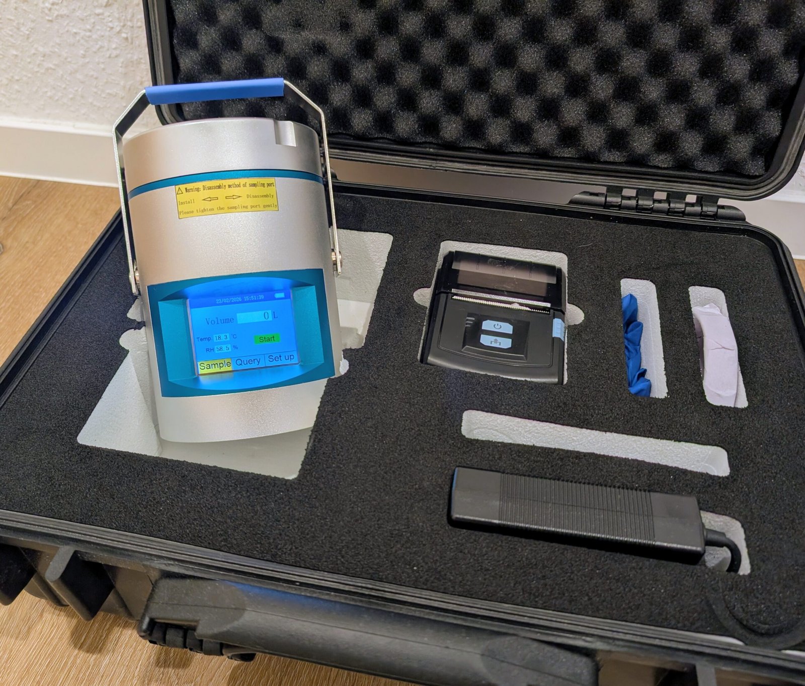 - Volumenstrom: Unser geeichtes Gerät zieht ein exakt definiertes Luftvolumen von 100 Liter/Min, was präzise, reproduzierbare Messungen ermöglicht.